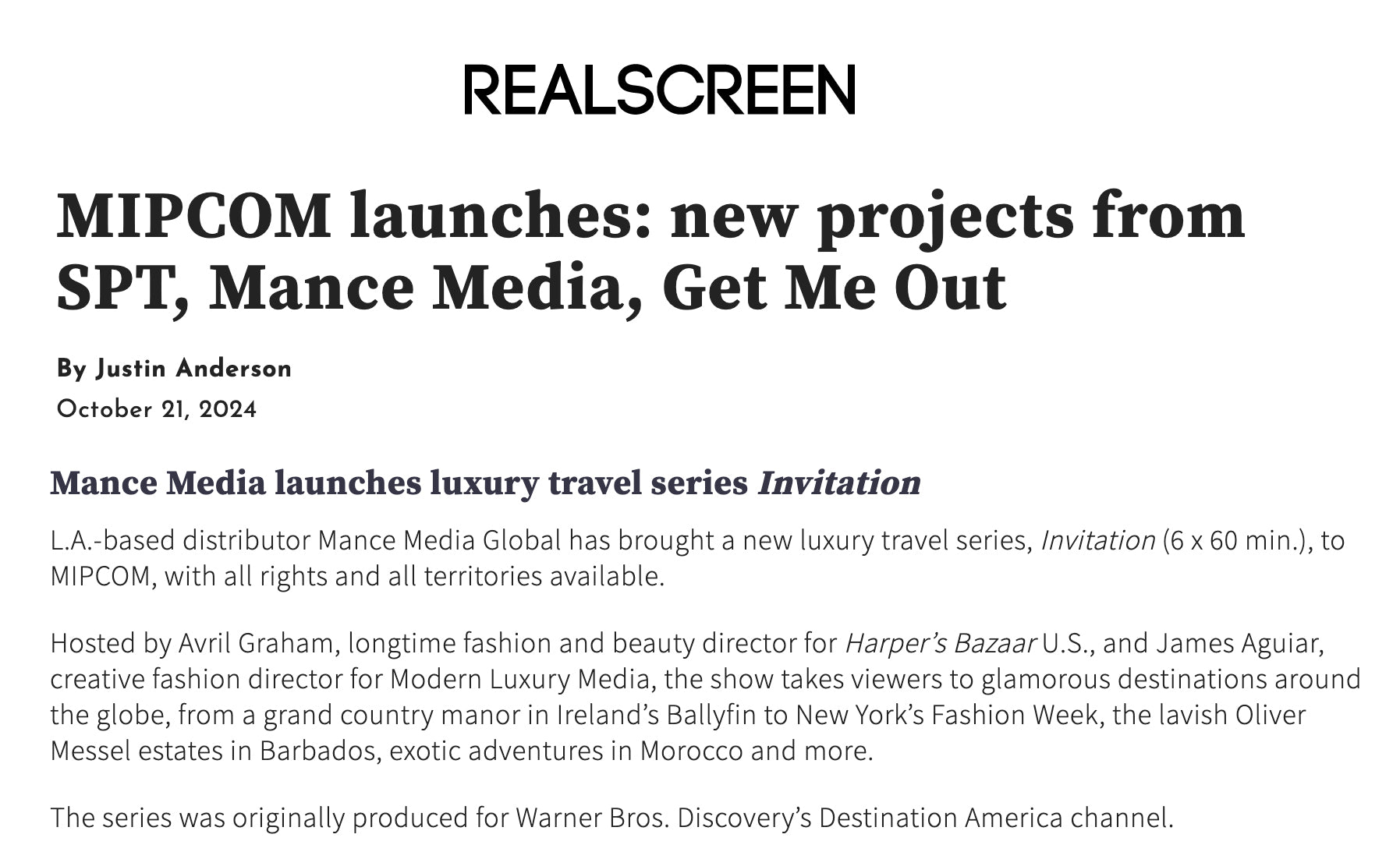 Mance Media Global exhibits at the industry's largest content markets, including NATPE, MIPTV, NAB, MIPCOM and AFM.